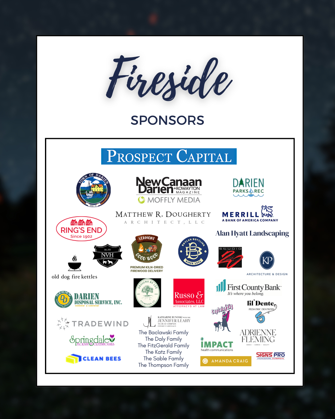 If you are interested in sponsoring Fireside, please call 203-655-7459 for more information.